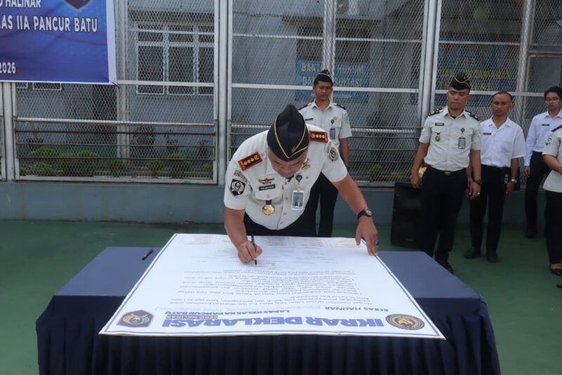 Pancur Batu – Lapas Kelas IIA Pancur Batu menggelar Apel Ikrar Deklarasi Zero HALINAR (Handphone, Pungli, dan Narkoba) sebagai bentuk komitmen bersama dalam mewujudkan lingkungan pemasyarakatan yang bersih, aman, dan berintegritas. Kegiatan ini dipimpin langsung oleh Kepala Lapas Pancur Batu dan diikuti oleh seluruh jajaran pegawai. Senin, 20 April 2026