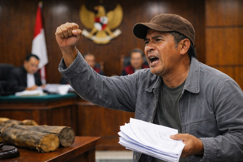Rabusin mengungkapkan, sejak awal perkara, ia menemukan banyak kejanggalan yang menurutnya patut menjadi perhatian bersama. Ia menyebut, surat keterangan yang dijadikan dasar dakwaan baru diterbitkan dan ditandatangani kepala desa pada tahun 2025, padahal laporan dugaan pencurian kayu terhadap dirinya sudah dibuat pada tahun 2024. “Saya mempertanyakan, bagaimana mungkin surat yang lahir setelah laporan bisa dijadikan bukti utama? Ini sangat janggal dan tidak masuk akal,” ujar Rabusin.